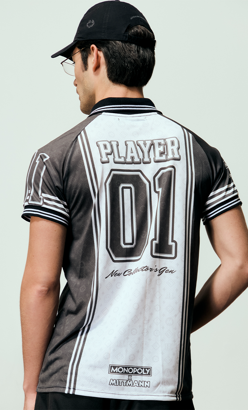 A Camisa de Time Player 01 é uma releitura das clássicas camisas de time com um toque divertido, trazendo um monograma exclusivo de MONOPOLY X MITTMANN desenvolvido para essa coleção. A Camisa polo em Dry-Fit traz conforto no uso, com cores que combinam entre si trazendo versatilidade no seu uso.