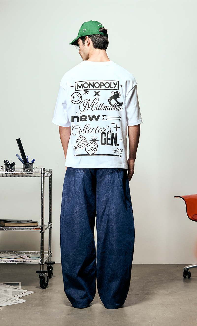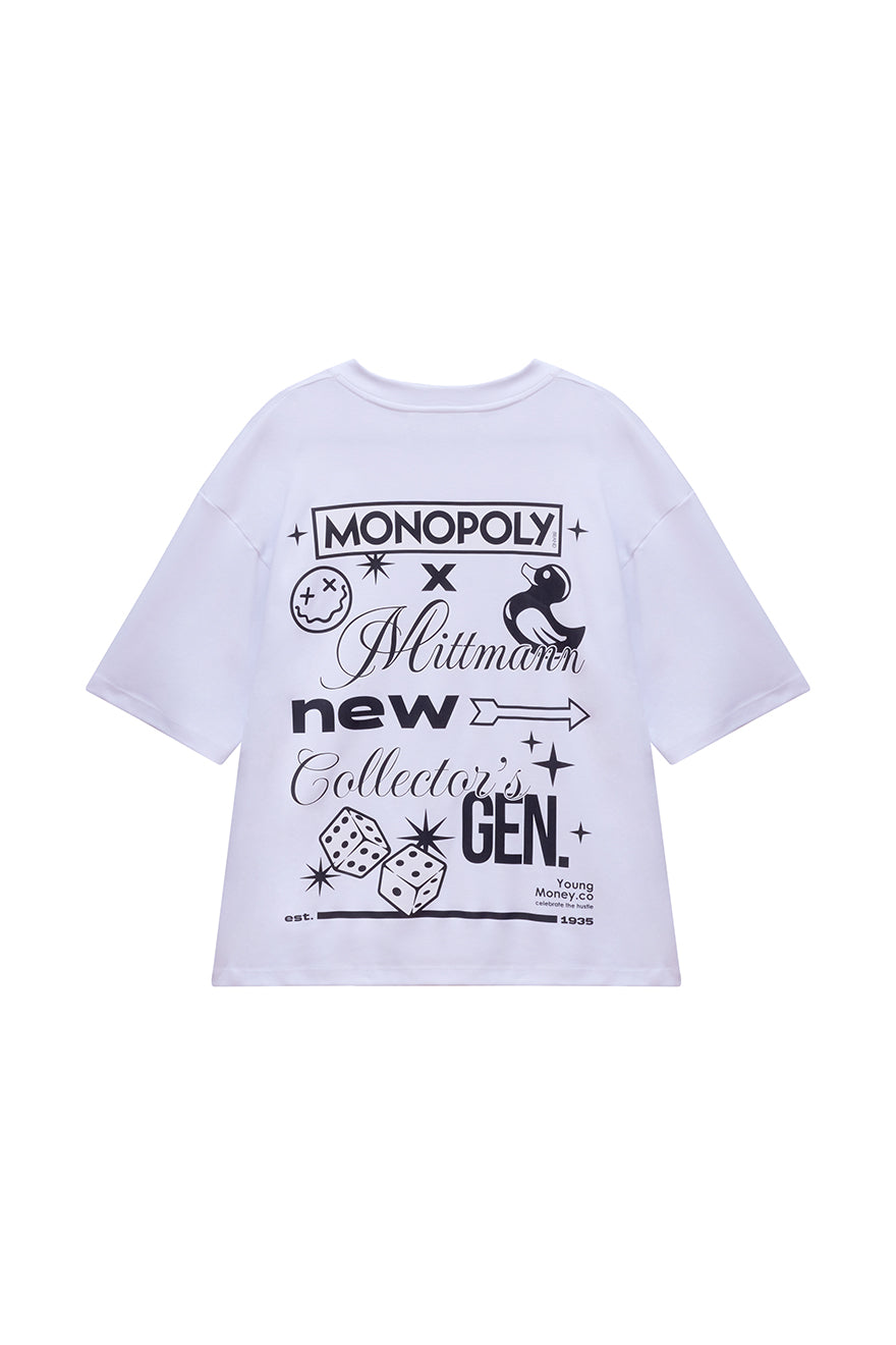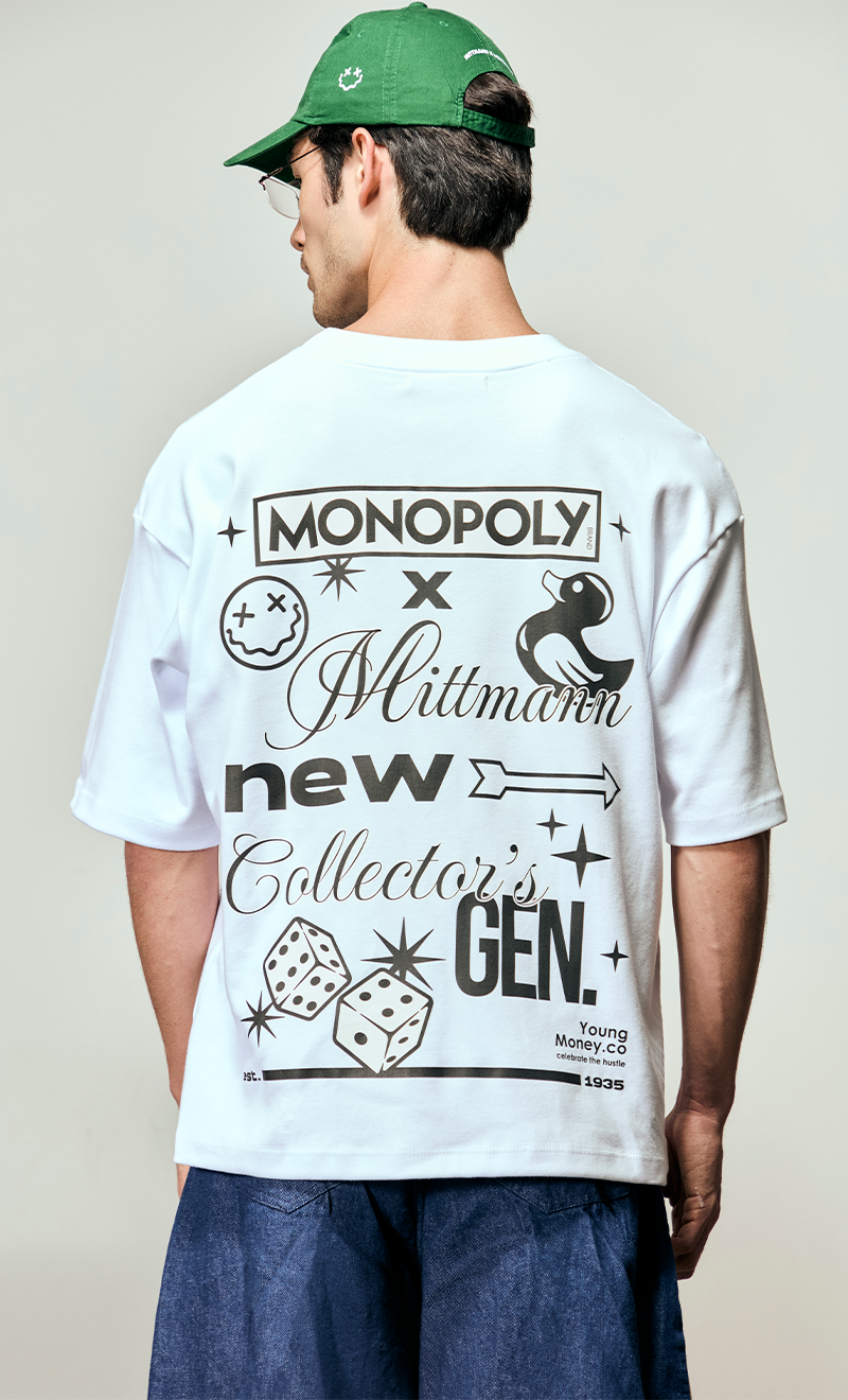A Camiseta Young Money tem a modelagem oversized e é feita com algodão que tem um toque macio pra quem gosta de conforto e elegância. As estampas, feitas com estamparia digital, trazem um desenho divertido e ácido com a collab de MONOPOLLY x MITTMANN.