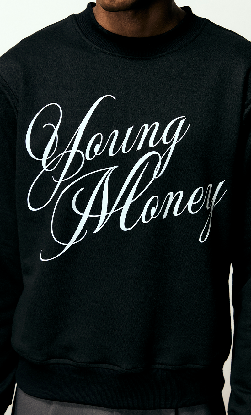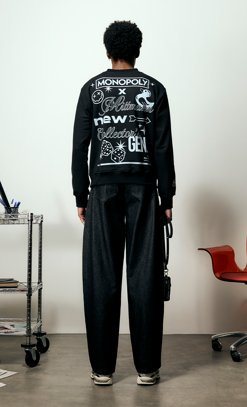 O Moletom Preto Young Money é a peça statement da coleção. Com estampa frontal minimalista e arte exclusiva do Monopoly nas costas, ele traz um toque de irreverência ao visual. O detalhe do Mister Monopoly na manga finaliza o design com personalidade, um clássico street com alma de jogo.