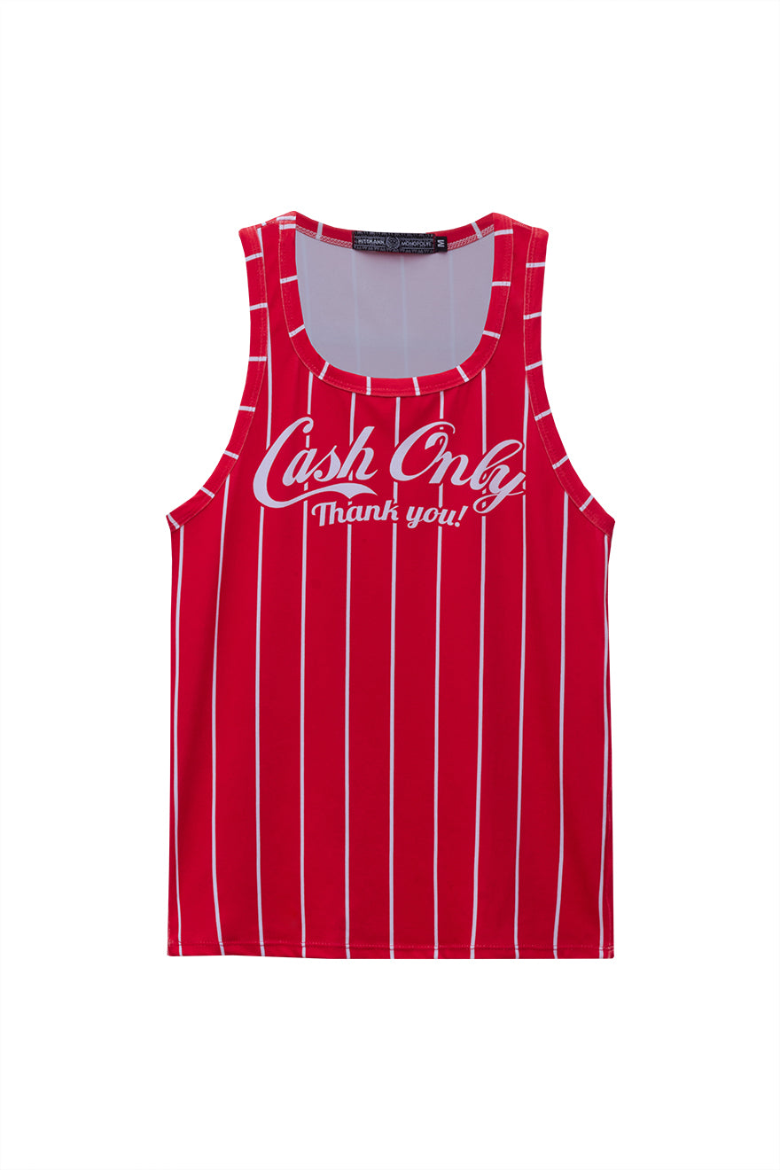 A Regata Vermelha Cash Only é a cara do streetwear clássico. Com listras brancas e caimento leve, ela combina atitude e conforto na medida certa. Perfeita pra compor looks despojados com personalidade.